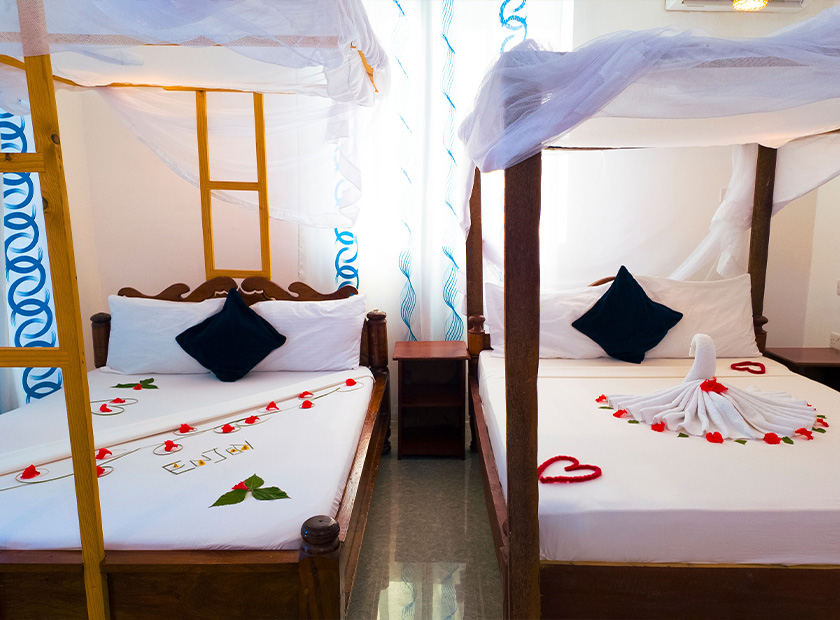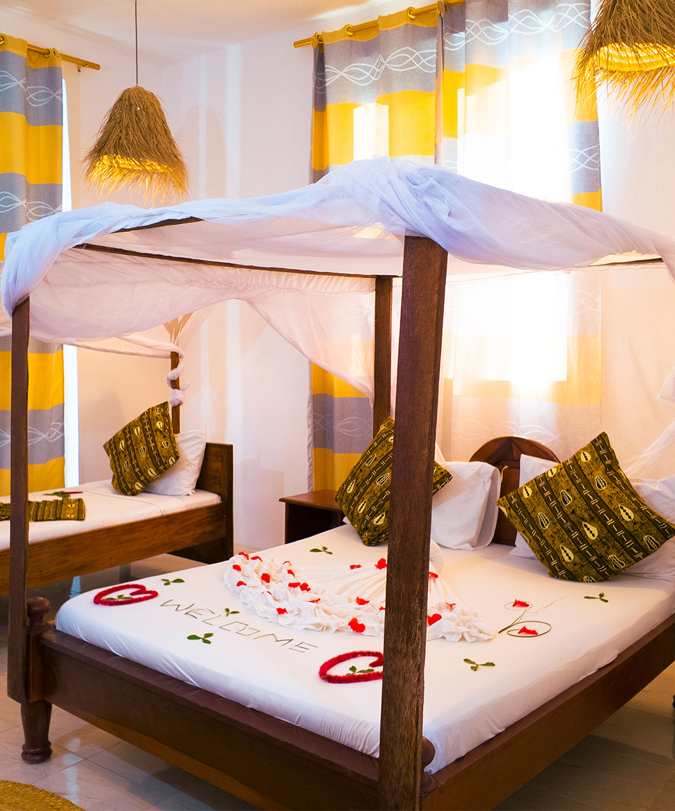 Just 30 meters from Zanzibar’s most stunning white sand beach and turquoise waters, Green House Hotel is nestled in the heart of Nungwi Village, surrounded by a lush tropical garden filled with trees and blooming flowers. Green House Hotel has a friendly, laid-back vibe — the perfect place to meet fellow travelers and enjoy the best of Zanzibar island life!