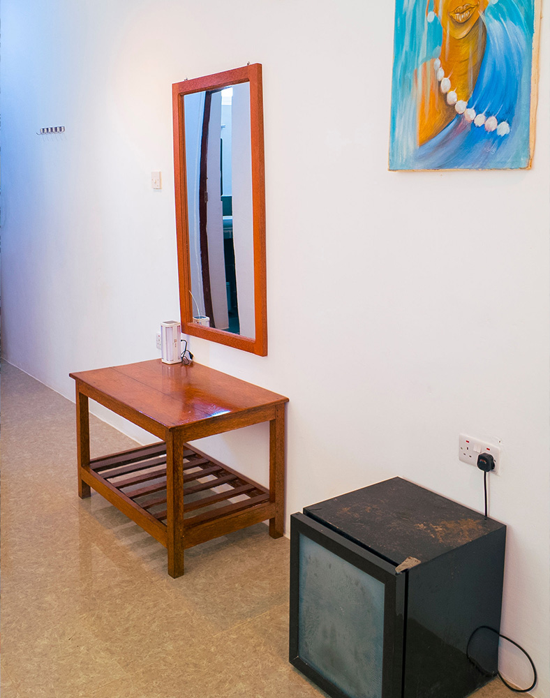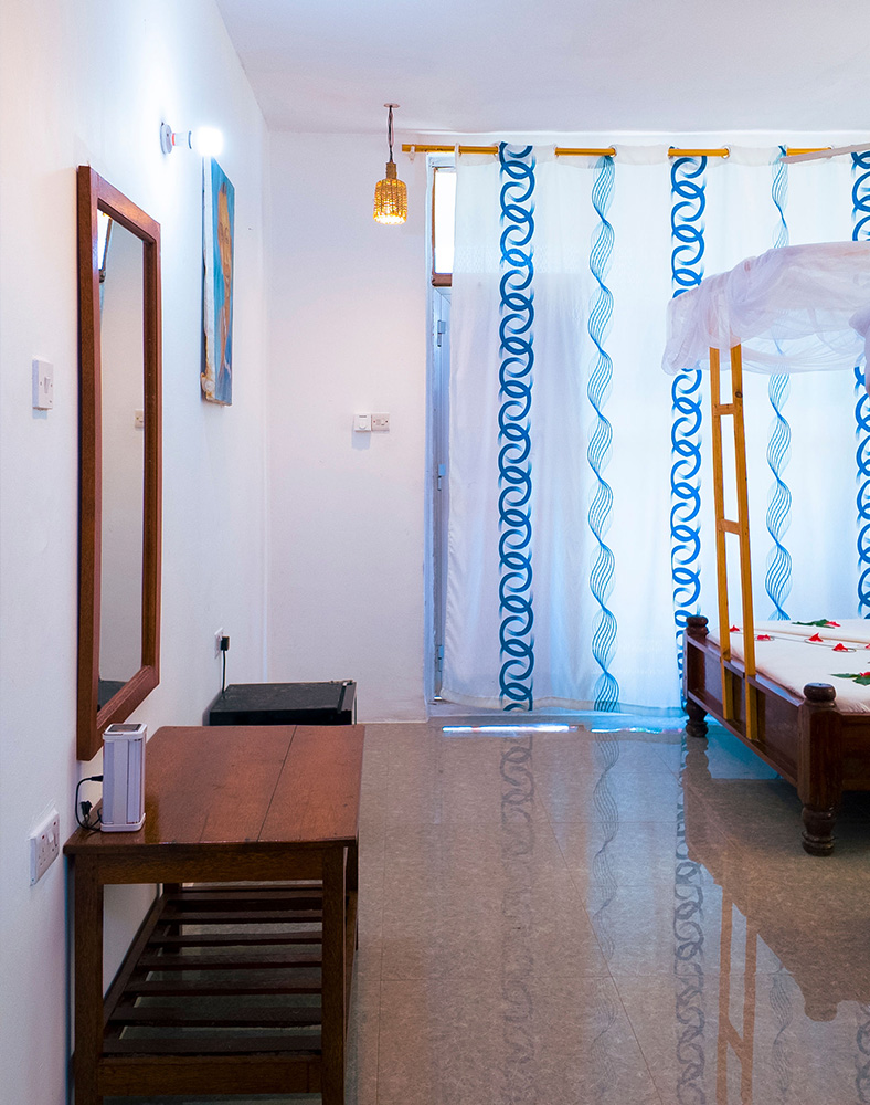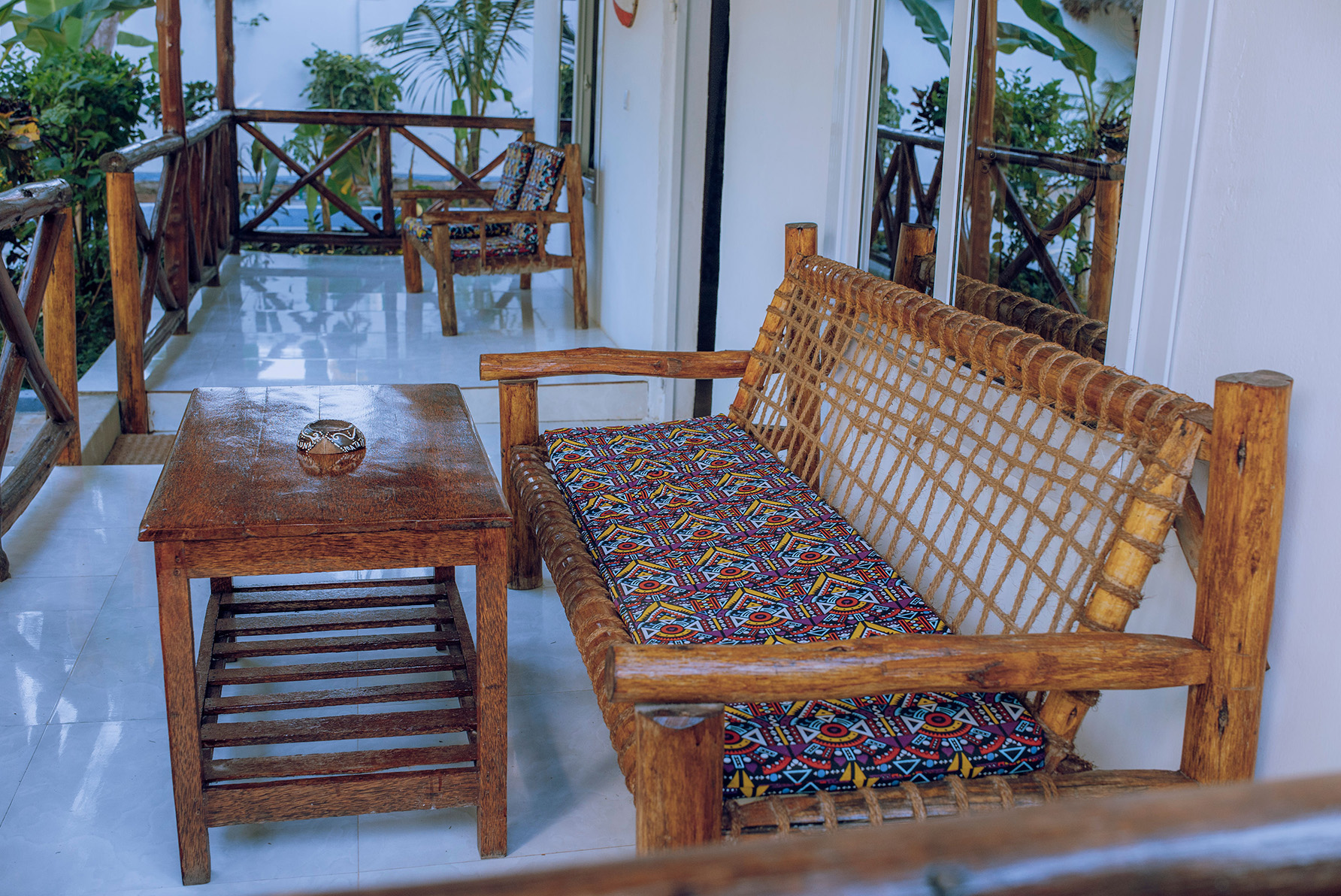 Step into a warm and inviting Zanzibari-style family room, where Swahili heritage meets coastal elegance. The room features one double bed and one single bed, along with mats woven from aquatic grasses (mikeka), creating a grounded and harmonious atmosphere. Lantern-style pendant lights and local artwork add to the welcoming, culturally rich ambiance—perfect for family moments and relaxation.